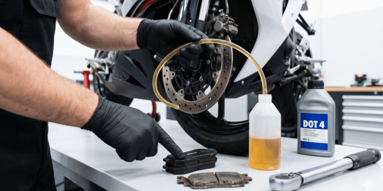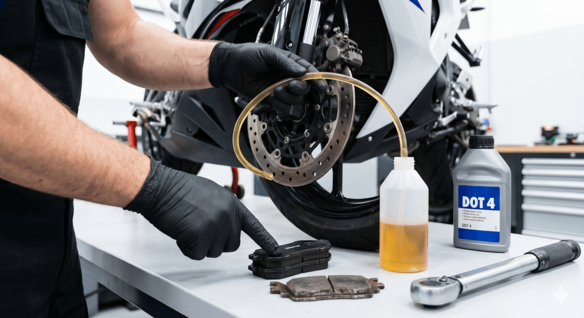 Una manutenzione regolare e meticolosa è il primo passo, e spesso il più risolutivo, per garantire prestazioni ottimali. Molti problemi di frenata derivano da una semplice negligenza di operazioni di base che chiunque può imparare a eseguire. La corretta manutenzione è la via maestra su come migliorare le prestazioni della frenata moto e aumentare controllo e sicurezza senza necessariamente investire in componenti costosi. Il protagonista indiscusso è il liquido freni. Essendo igroscopico, tende ad assorbire l’umidità presente nell’aria, abbassando il suo punto di ebollizione. Con l’uso intenso, il calore generato può portare il liquido a ebollizione, creando bolle di vapore comprimibili nel circuito e causando la temuta leva spugnosa. Per questo motivo, il liquido va sostituito tassativamente secondo le indicazioni del costruttore, solitamente ogni due anni. Un controllo visivo periodico del livello e del colore del liquido nella vaschetta è altrettanto importante. Un liquido scuro e torbido è un chiaro segnale che è ora di intervenire. Altrettanto cruciale è l’ispezione delle pastiglie: lo spessore del materiale d’attrito non deve mai scendere sotto i 2 millimetri. Infine, una pulizia periodica delle pinze e dei pistoncini con prodotti specifici rimuove polvere e detriti che possono ostacolarne il corretto movimento.
