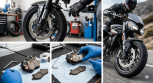 Il primo passo è quasi sempre la sostituzione dei tubi freno. I tubi in gomma di serie tendono a dilatarsi sotto pressione, specialmente quando sono vecchi o sotto stress termico, contribuendo alla sensazione di leva spugnosa. Passare a tubi in treccia metallica (o treccia aeronautica) elimina questo “effetto polmone”, garantendo che tutta la pressione esercitata sulla leva si trasferisca direttamente alle pinze. Il risultato è un feeling più diretto, preciso e una risposta più immediata. Un altro upgrade fondamentale riguarda le pastiglie. La scelta del giusto materiale d’attrito può cambiare il carattere della frenata.