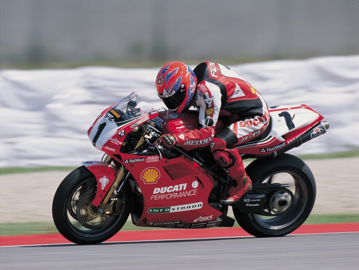 Amato per il suo stile di guida estremo e per il suo piglio a dir poco combattivo dentro e fuori dalle piste, ‘King’ Carl non è solamente un idolo per tifosi Ducati, il marchio a cui più di ogni altro l’inglese dagli occhi di ghiaccio ha legato la sua immagine, ma un vero e proprio simbolo del motorsport “old school”: a cavallo tra gli anni Ottanta e Novanta ha corso e vinto diverse volte al leggendario Tourist Trophy dell’Isola di Man, disputando anche alcuni Gran Premi del Motomondiale nelle classi 250 e 500.