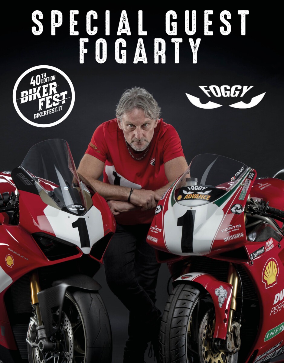Fogarty presenzierà all’inaugurazione ufficiale presso l’Area Luna Park (venerdì 15 maggio, ore 12) incontrando tifosi e appassionati per foto e autografi nelle giornate di venerdì 15 e sabato 16. Nell’ambito del Custom Bike Show, inoltre, assegnerà il premio ‘Foggy’s Best’, eleggendo la sua preferita tra le moto personalizzate che partecipano al contest.