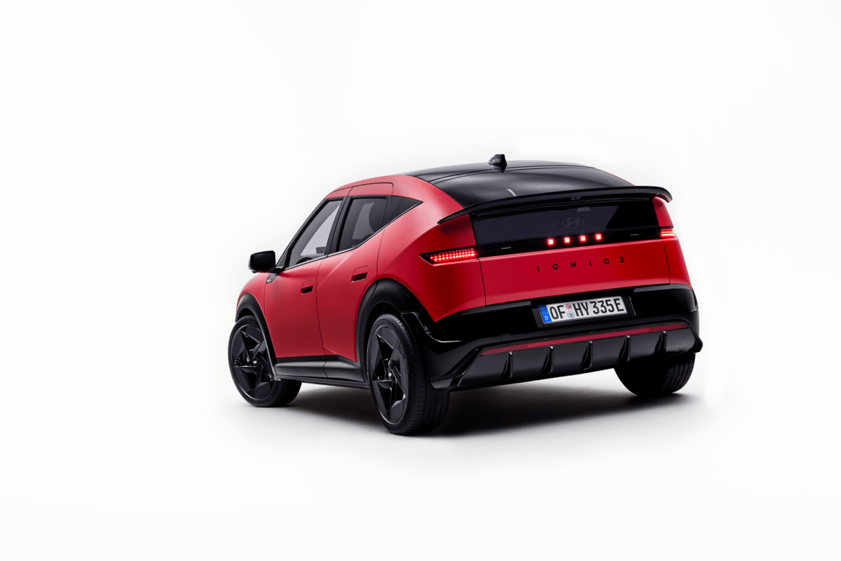 IONIQ 3 si distingue per la nuova silhouette “Aero Hatch” dalla grande personalità, disegnata per offrire una grande efficienza aerodinamica e, al contempo, uno spazio interno generoso. Il frontale basso sfuma in una originale linea del tetto che corre dritta sull’abitacolo, per poi chiudere verso il basso al posteriore e fondersi senza soluzione di continuità con lo spoiler in stile ducktail. Questa silhouette massimizza l’efficienza aerodinamica come anche la spaziosità interna, a beneficio del comfort di tutti i passeggeri.