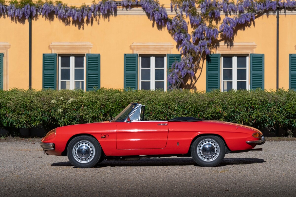 A metà degli anni 60, la dirigenza di Alfa Romeo decise di dar vita all’erede della Giulietta Spider, un modello che aveva conquistato gli Stati Uniti incarnando una “different way of life”. L’obiettivo era ambizioso e venne affidato alla matita di Pininfarina, che aveva già firmato dieci anni prima la Giulietta Spider. Per la nuova vettura l’atelier torinese partì dalla meccanica della Giulia Sprint GT, con passo ridotto a 2.250 mm, e vennero preservate tutte le caratteristiche dinamiche – performance, accelerazione, ripresa e tenuta di strada – inclusi i contenuti meccanici di alto livello, come sospensioni anteriori indipendenti, cambio a 5 marce, trazione posteriore e quattro freni a disco.