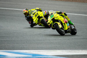 Sabato positivo anche per Di Giannantonio, che in qualifica ha conquistato la prima fila per la terza volta consecutiva in questa stagione (1’49”097). Partito dalla terza casella della griglia, Fabio è entrato nella lotta per il podio sin dalle prime fasi di gara, mostrandosi competitivo anche quando la pioggia ha reso le condizioni più insidiose. Leader della gara anche sul bagnato, il pilota romano ha poi effettuato il cambio moto rientrando in pista in quinta posizione. Di Giannantonio ha mantenuto la top 5 fino alla bandiera a scacchi e con questo risultato è quinto nella classifica generale con 55 punti.
