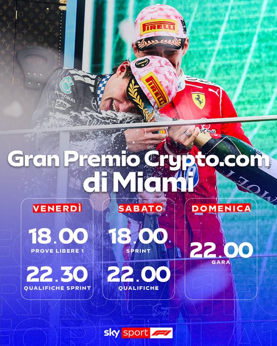F1 A MIAMI – La F1 riparte dal continente americano per il quarto appuntamento della stagione. Il Circus sbarca negli Stati Uniti per il GP di Miami, il secondo weekend dell’anno con il format della Sprint. Si parte giovedì alle 19.30 con la conferenza stampa piloti. Venerdì la prima e unica sessione di prove libere inizia alle 18 (e durerà 90 minuti, anziché i soliti 60, per dare più tempo ai team per testare le modifiche regolamentari approvate dalla FIA durante la pausa forzata causa conflitto in Medio Oriente), mentre alle 22.30 è già tempo di caccia alla pole per definire l’ordine di partenza della Sprint, che scatta sabato alle 18. Le qualifiche della gara sono in programma sempre sabato alle 22, mentre domenica sempre alle 22 il via della gara. Nel weekend statunitense in pista anche la F2.