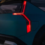 Nella vista posteriore di Concept EV9 spicca l’andamento triangolare del montante D che funge da punto visivo focale in perfetta armonia con il profilo futuristico e spigoloso del pionieristico SUV 100% elettrico. L’innovativo design del montante D da’ luogo alla inconfondibile firma luminosa Daylight Opening (DLO). I cerchi da 22 dal design poligonale rafforzano l’aspetto geometrico e l’imponente presenza su strada di Concept EV9. Un elemento aerodinamico dal design triangolare regola il flusso d’aria attorno alle ruote, ponendosi in contrasto con la forma circolare degli pneumatici, interpretando pienamente, ancora una volta, la filosofia di design Opposites United e garantendo equilibrio ed armonia in ogni dettaglio. Per rimanere in sintonia con l’ambiente – e attingendo al pilastro del design “Bold for Nature” – il Concept EV9 ha un tetto panoramico DLO onnicomprensivo, che invita i passeggeri a perdersi guardando il cielo e allo stesso tempo riverbera il suo impatto positivo sul benessere e sull’umore. L’elegante struttura vetrata crea una connessione diretta con l’ambiente esterno, che si tratti del sole che inonda l’abitacolo in una giornata dal cielo azzurro, del suono rilassante della pioggia durante una gita autunnale o del bagliore della luce della luna e delle stelle in una notte senza nubi.