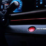 Gli interni sono stati completamente ridisegnati, realizzati con materiali di qualità superiore e finiture di pregio. I sedili sono progettati per la guida sportiva, garantendo supporto e postura ottimali. Cuciture rosse sul volante e accenti rossi, tipici del marchio NISMO, conferiscono all’abitacolo un carattere sportivo e un senso di alta qualità. L’eleganza degli interni è esaltata dalle venature del legno scuro presente in tutto l’abitacolo. L’illuminazione rossa ANDON di Nissan, caratteristica del marchio, contribuisce a creare un’atmosfera suggestiva. Il marchio NISMO si ritrova all’interno – impresso su sedili e cruscotto – e all’esterno – sul frontale, sul retro dell’auto e sugli pneumatici.