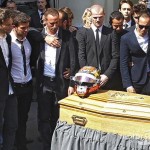 Impossibile da dimenticare il momento in cui gli amici e colleghi hanno portato fuori dalla cattedrale la bara di Jules e l’hanno circondato poi come in un grande abbraccio. Le loro mani appoggiate in un’ultima carezza, il casco sulla cassa, i loro sguardi, Adrian Sutil che quella tragedia l’ha vissuta da pochi metri nello svolgersi, quel maledetto 5 ottobre… delle pugnalate. Chi li ha vissuti allora, ha rivisto oggi le immagini di 21 anni fa, i funerali di Senna, l’ultima vittima della F1 fino all’incidente del 5 ottobre 2014 a Suzuka. E pensare che venerdì tutti loro saranno in pista fa davvero concludere che sono esseri speciali… Nessuno pensava potesse succedere di nuovo ma, per quanto la FIA abbia fatto per la sicurezza, le corse saranno sempre pericolose, purtroppo.